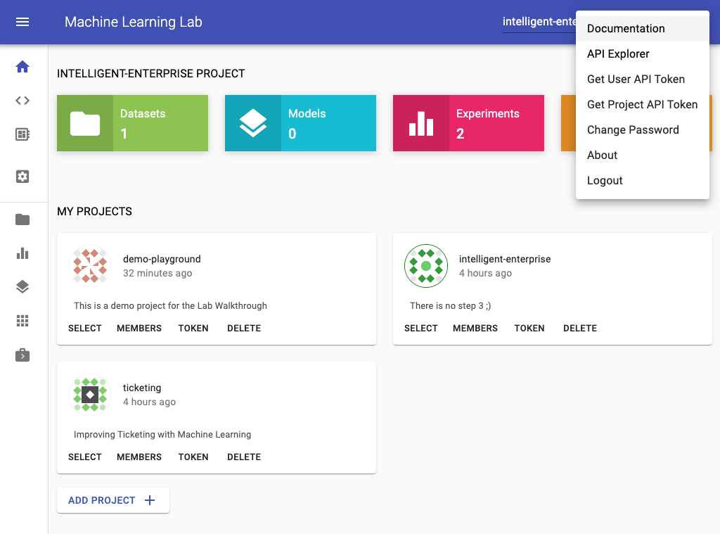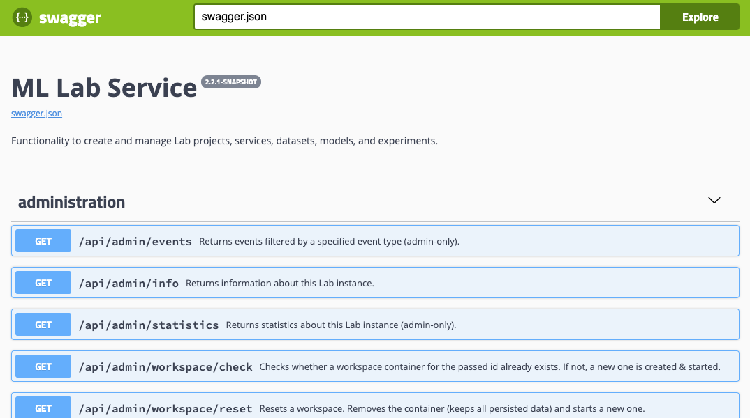 The Lab REST API provides all the functionality to create and manage Lab projects, services, datasets, models, experiments, and users.