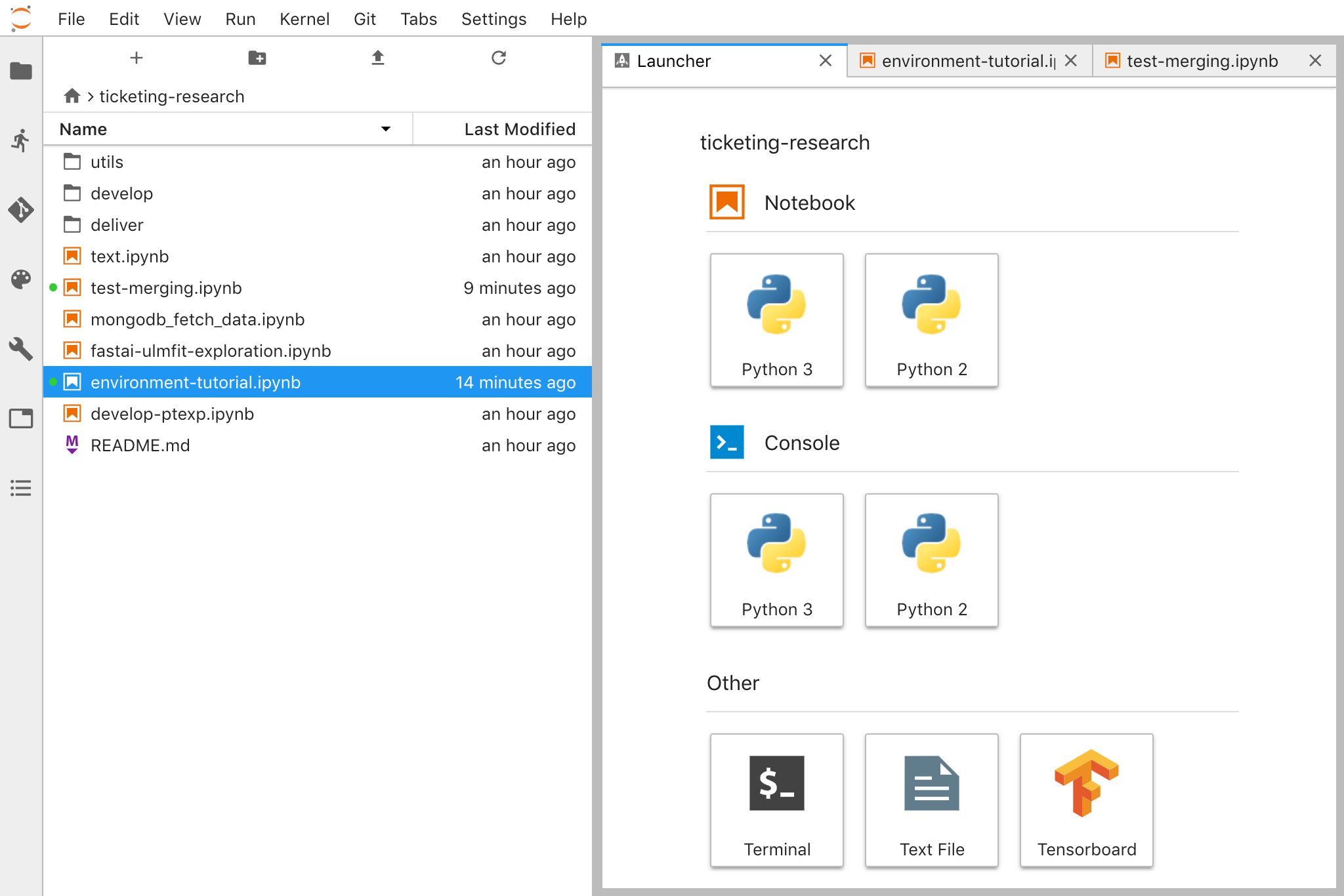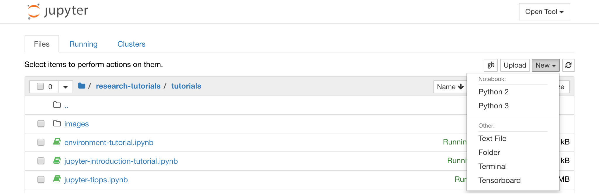 JupyterLab (Open Tool -> JupyterLab) is the next-generation user interface for Project Jupyter. It offers all the familiar building blocks of the classic Jupyter Notebook (notebook, terminal, text editor, file browser, rich outputs, etc.) in a flexible and powerful user interface. This JupyterLab instance comes pre-installed with a few helpful extensions such as a the jupyterlab-toc, jupyterlab-git, and juptyterlab-tensorboard.