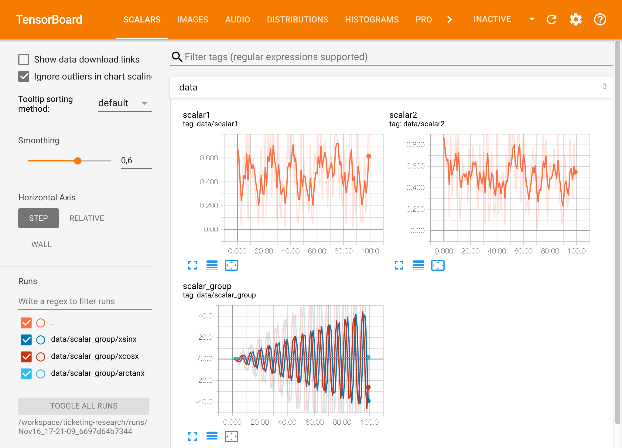 If you have opened a Tensorboard instance in a valid log directory, you will see the visualizations of your logged data.