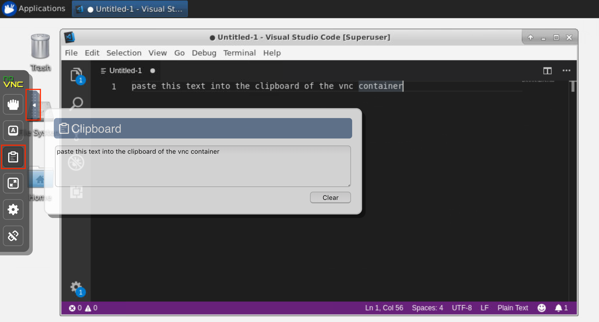 Clipboard: If you want to share the clipboard between your computer and the workspace, you can use the copy-paste functionality as described below: